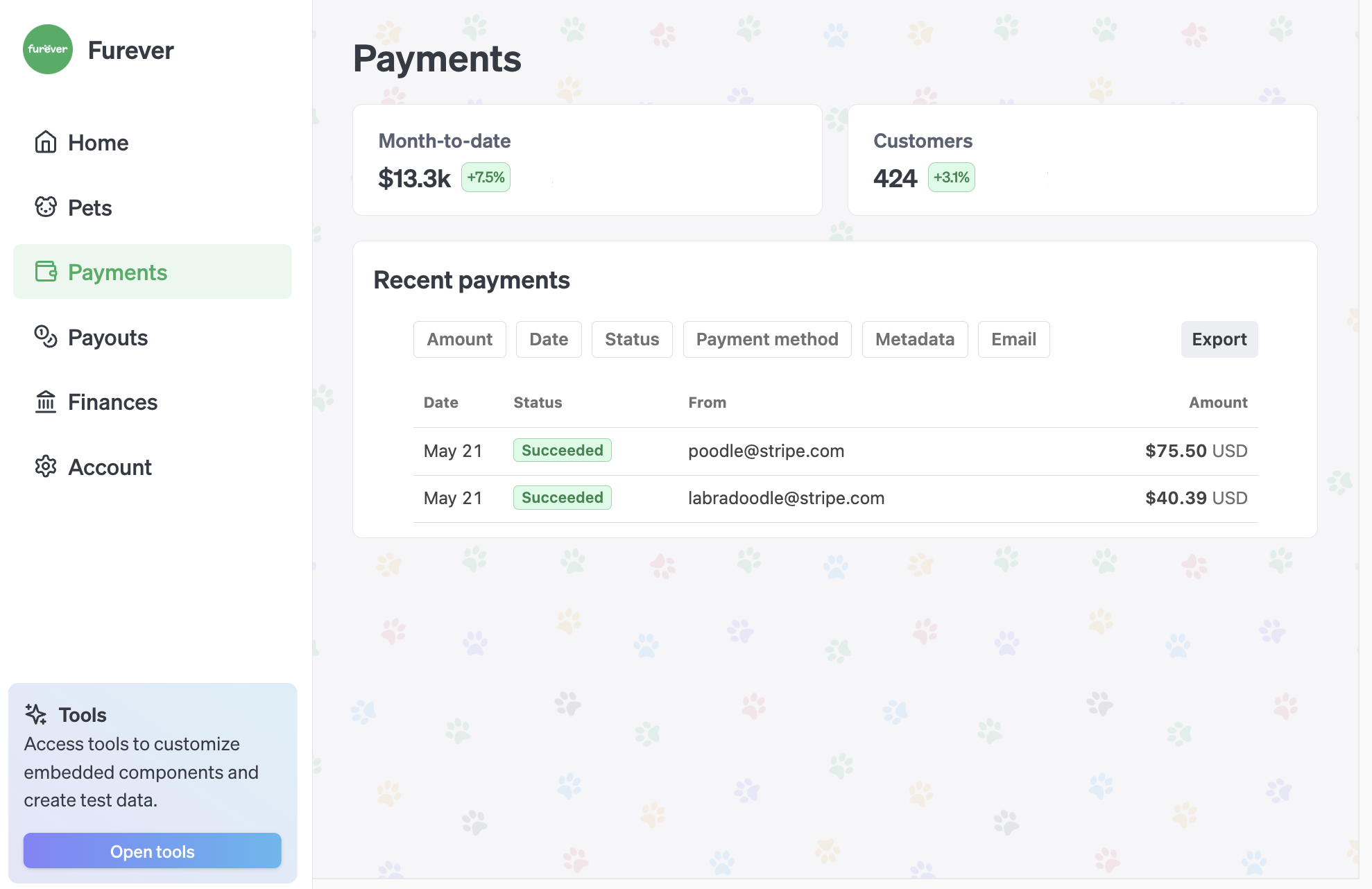 Explore our guides and examples to integrate Stripe.